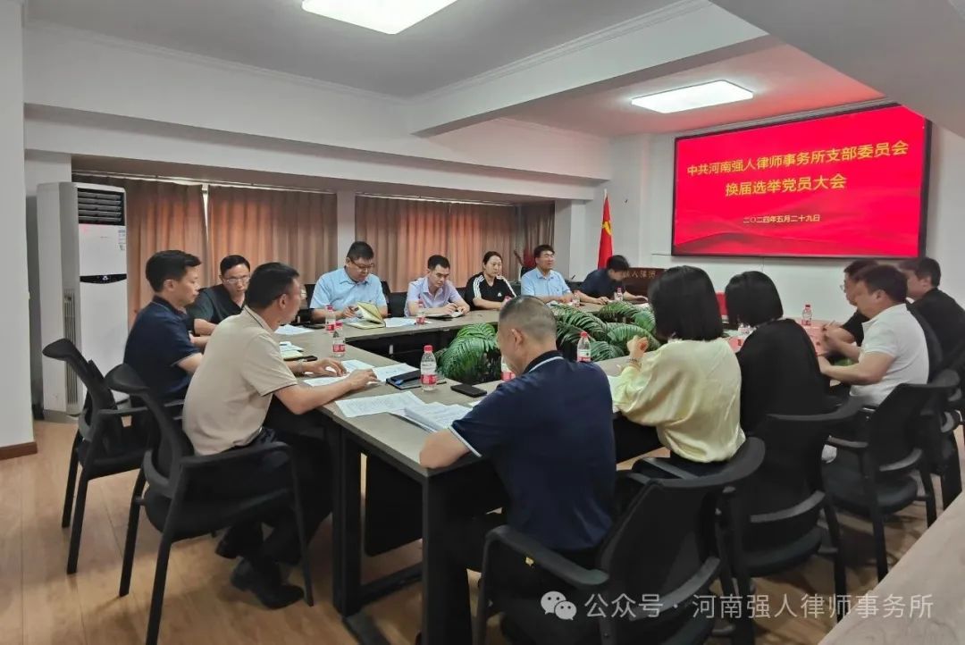 为进一步全面加强新时代律师事务所党组织建设,切实发挥党组织战斗堡垒作用,根据《中国共产党章程》和《中国共产党基层组织选举工作条例》相关规定要求,经漯河市律师行业党委批准,中共河南强人律师事务所支部委员会于2024年5月29日下午在13楼会议室召开党员大会,成功选举产生了新一届支部委员会,圆满完成了换届选举工作。