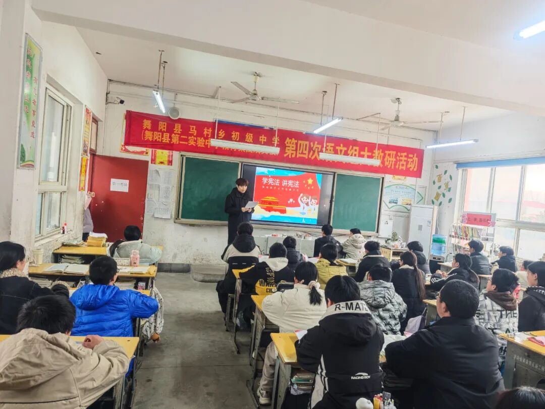 12.4日上午,河南强人律师事务所赛鹏程律师受邀走进马村乡第一初级中学,为同学们带来一堂生动实用的宪法课。律师以“宪法护航成长”为主题,用贴近生活的案例和互动问答,深入浅出地讲解了宪法与每位同学学习、生活的密切联系,引导大家知权利、明义务,树立宪法意识,筑牢法治信念。